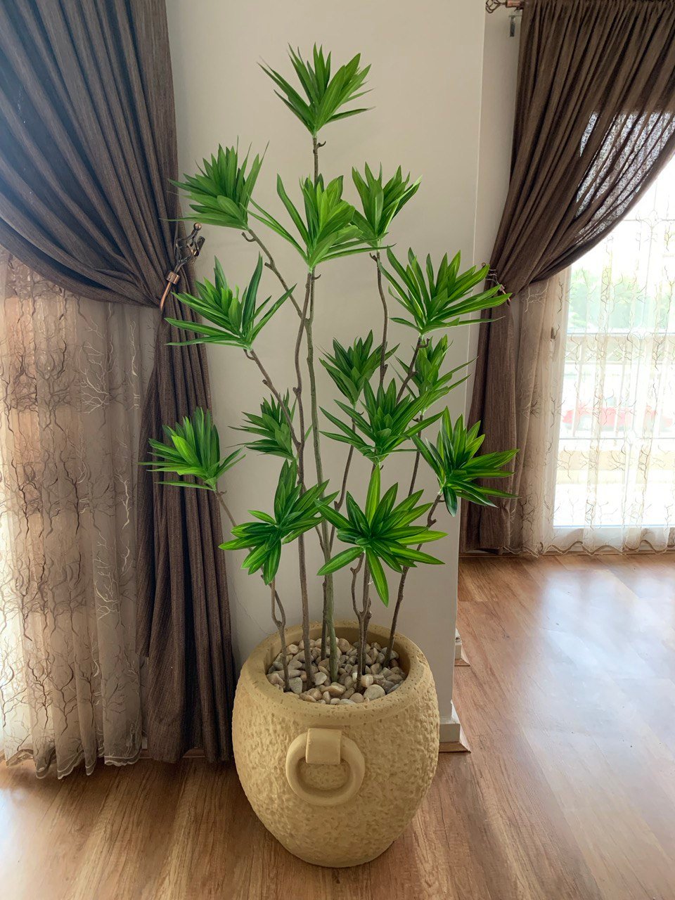 مصممة بدقة لتشبه النباتات الطبيعية بأوراقها الخضراء الكثيفة وجذعها الواقعي، مما يمنح المكان إحساسًا بالحيوية والهدوء دون الحاجة إلى العناية أو الري.