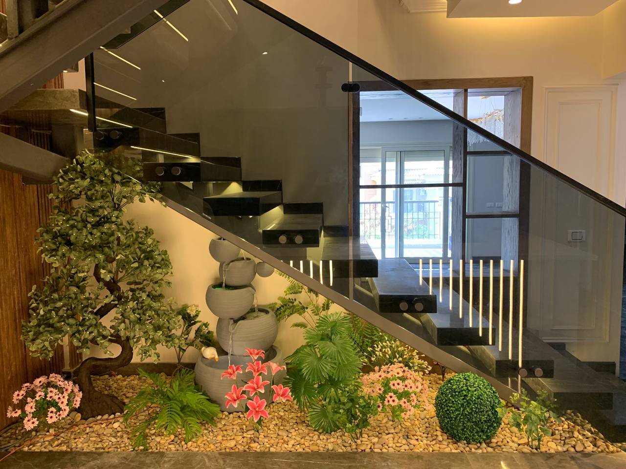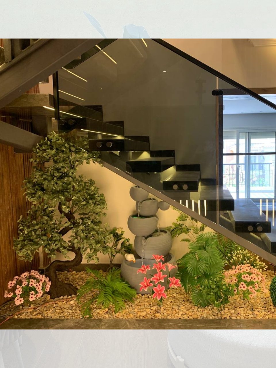 يجمع بين نباتات صناعية متنوعة بألوان وأشكال طبيعية، مزروعة وسط أحجار بيضاء تعكس جمال الديكور وتضيف لمسة عصرية أنيقة.