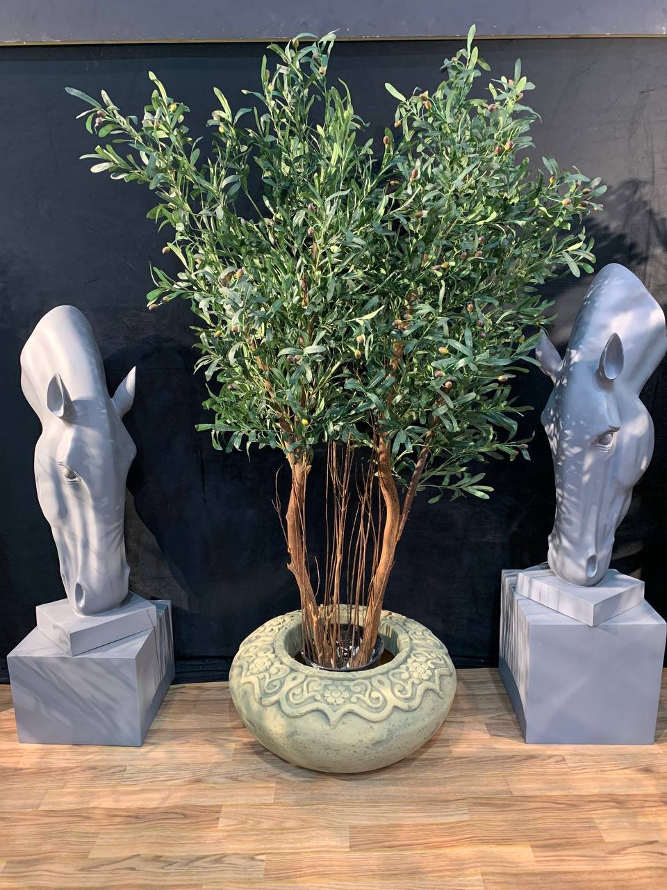 مصممة بدقة لتشبه النباتات الطبيعية بأوراقها الخضراء الكثيفة وجذعها الواقعي، مما يمنح المكان إحساسًا بالحيوية والهدوء دون الحاجة إلى العناية أو الري.